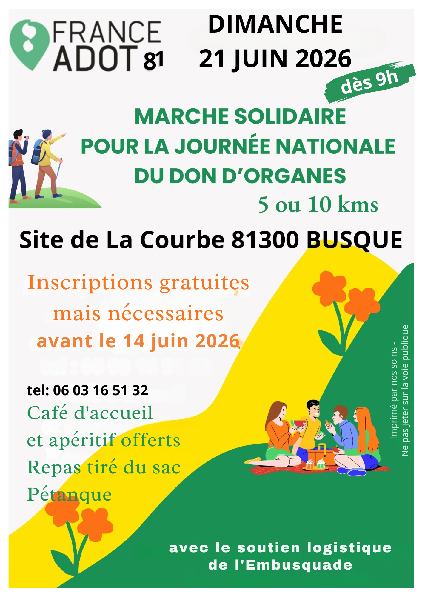 FRANCE ADOT 81 est une association qui œuvre pour informer et sensibiliser sur la cause du Don d’organes, de tissus et de moelle osseuse.