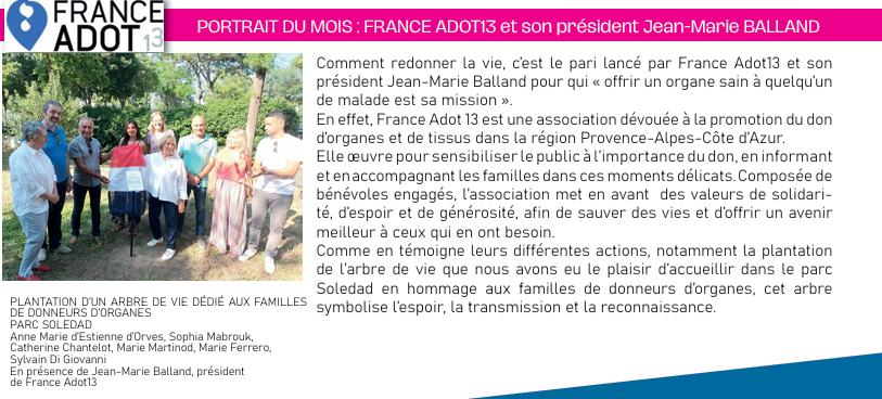 France Adot 13 par l’intermédiaire de son président à rappeler l’importance de donner autant pour les dons d’organes , (après la mort ou de son vivant ) ou de la moelle osseuse par une inscription sur le registre des donneurs potentiels de moelle osseuse