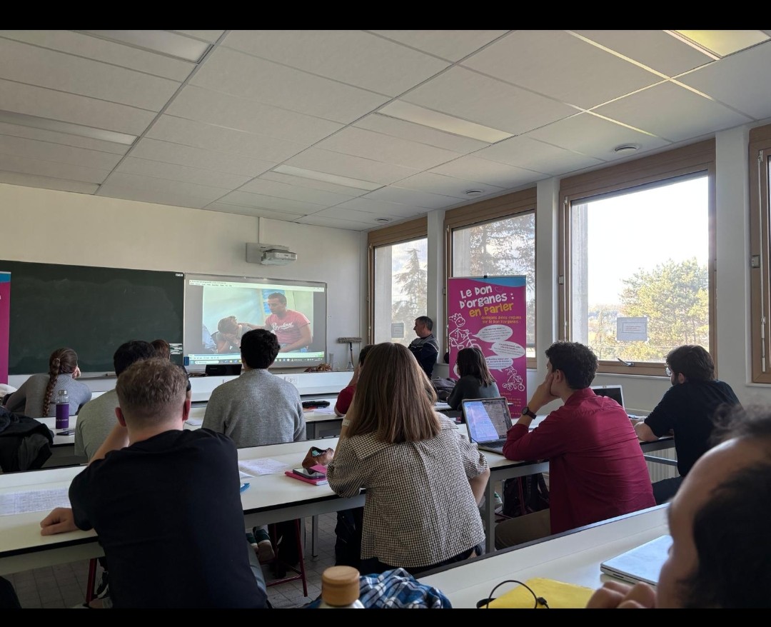 15 Octobre 2025 : Nouvelle intervention à la MFR de St Laurent de Chamousset (69). Jean-Luc Besson Besson témoigne, lui-même greffé, témoigne avec toujours autant d’émotions et de joie d’avoir reçu un cadeau de la vie, un coeur donné il y a juste 10 ans. Chantal Gloriod (notre Présidente) et Isabelle Lafay (pour qui c’était la 1ère intervention) ont expliqué aux jeunes de 3ème et de 4ème, les circonstances du don d’organes et de la greffe en France.