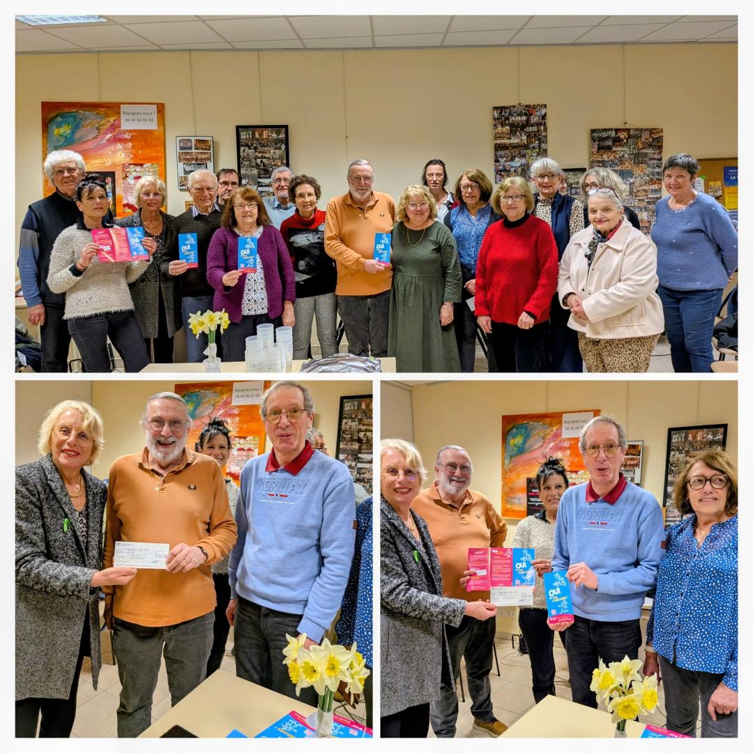 Mercredi 25 Février 2026 : Remise officielle le 25 février 2026 d’un chèque de 1 800 € au profit de France Adot 69, suite au concert organisé le 14 Décembre 2025 à l’église de ST SYMPHORIEN D’OZON, par le Groupe Vocal Octavium, représentée par Françoise Chassigneux, d’une famille de donneur.